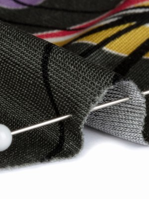 Fuchsia, Black and White Floral and Striped Batik Inspired Silk Interlock Knit