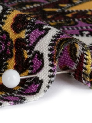 Pink, Purple and Black Paisley Stripes with Geometric Borders Printed Silk Jersey
