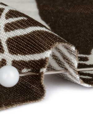 Dark Brown, Bright Blue and Cream Flowers and Crosshatching Silk Jersey