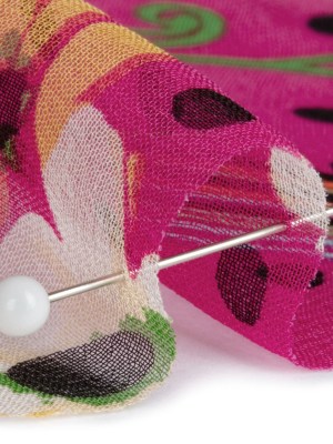 Hot Pink, Yellow and Green Stripes, Spots and Flowers Silk Chiffon
