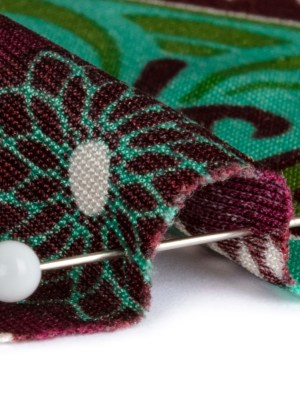 Burgundy, Green and Navy Palm Leaf Mandalas and Classical Stripe Border Silk Jersey