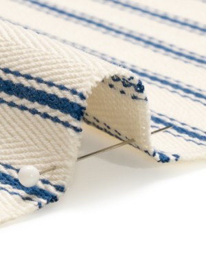 White on Navy Ticking Stripes Cotton Herringbone Twill