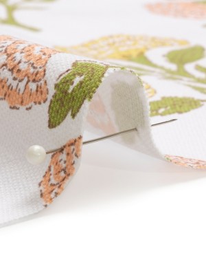 Coral, Yellow and Green Classic Floral Printed Cotton Canvas