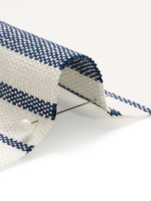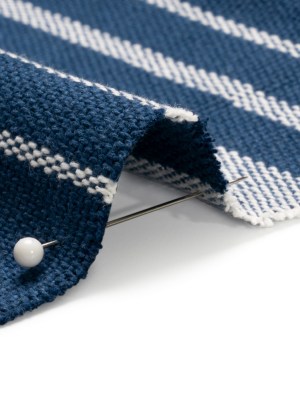 White on Navy Striped Basketweave Cotton Canvas