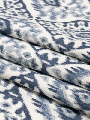Muted Blue, Navy and White Decorative Ikat Diamonds Cotton Canvas