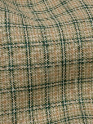 Green and Beige Checked Lightweight Linen Woven