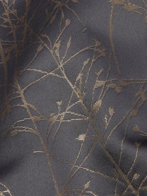 Metallic Satin-Faced Drapery Jacquard – Mole Delicate Grasses – British Imported