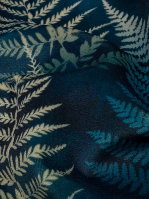 Printed Polyester Velvet – Ink Blue Foggy Ferns – British Imported