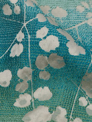 Drapery Jacquard – Verdigris Ombre Stripes and Little Flowers – British Imported
