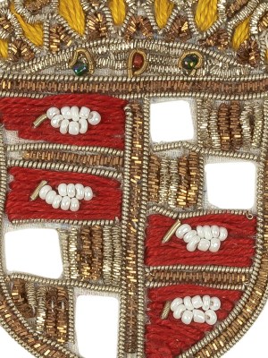 Vintage Gold, Red and Blue Coat of Arms Bullion Embroidered and Beaded Applique – 3″ x 2″