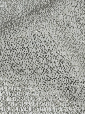 Corded Glitter Tulle with Sequins – White and Metallic Silver Abstract