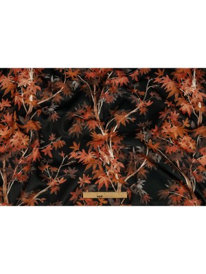 Polyester Microvelvet Print – rust Watercolor Tropical Branches – British Imported