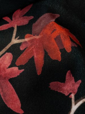 Polyester Microvelvet Print – Scarlet Watercolor Tropical Branches – British Imported