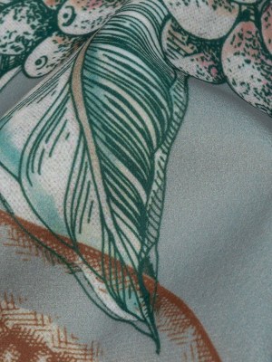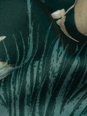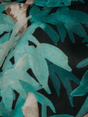 Polyester Microvelvet Print – Teal Watercolor Tropical Branches – British Imported