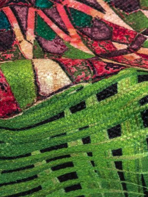Green, Baja Blue and Orange Mandalas and Leaves Printed Polyester Chenille