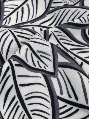 White, Folkstone Gray and Black Leaves UV Protective Compression Swimwear Tricot with Aloe Vera Microcapsules