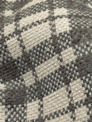 Gray and Ivory Plaid Polyester Upholstery Tweed