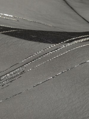 Metallic Silver and Black Lines Luxury Organza Brocade