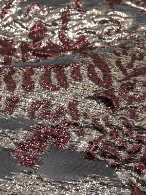 Metallic Silver and Plum Ornate Abstraction Luxury Burnout Organza Brocade