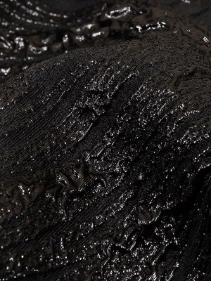 Metallic Black Feathers Luxury Brocade