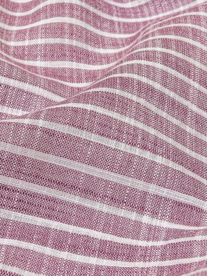 Amaranth and White Striped Slubbed Cotton and Polyester Woven