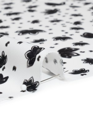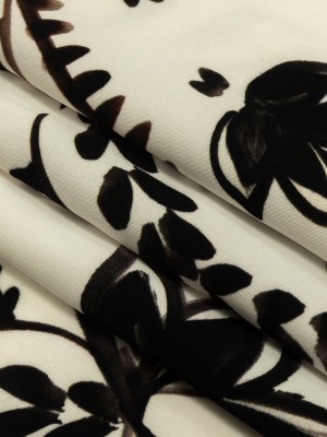 Viscose Crepe Print – Beige, Black and Ecru Ikat Florals – Mood Exclusive Exquisite Etchings