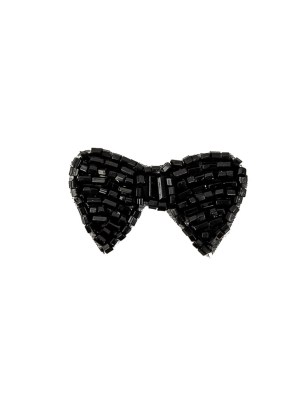 Vintage Tres Petit Black Beaded Bow Applique – 0.75″ x 1.5″