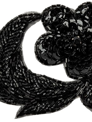 Vintage Black Sequins and Beaded Floral Applique with Rhinestone Core – 3.25″ x 5″