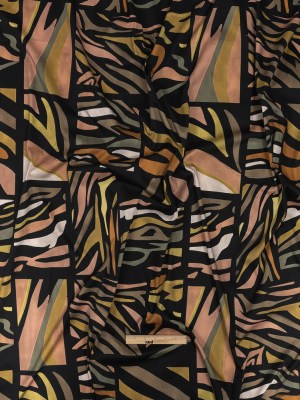 Stretch Cotton Sateen – Black and Green Animal Stripe Patchwork – In Bocca al Lupo Print – Mood Exclusive Viso Collection