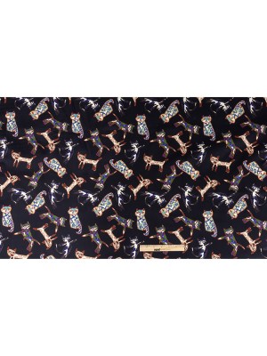 Linen and Rayon Woven – Navy and Yellow Animals and Palms – Hegemonic Hierarchy Print – Mood Exclusive Tumunyana Collection