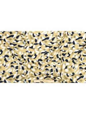 Stretch Cotton Sateen – Yellow, Navy and White Brushstrokes – Nebulous Amalgam Print – Mood Exclusive Tumunyana Collection