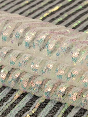 Mesh with Shell Sequins – Opal Blue and Almond Milk Stripes on White