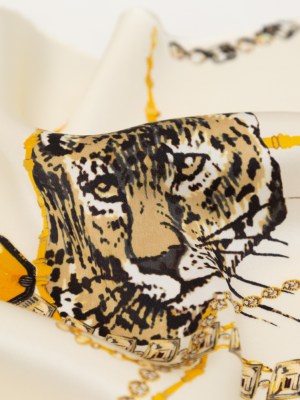Mood Exclusive Italian Off-White and Gold Cheetahs and Gems Silk Charmeuse