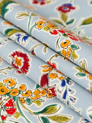 Stretch Cotton Sateen – Light Blue and Red Floral – Poppy Rivieras Print – Mood Exclusive St. Tropez Collection