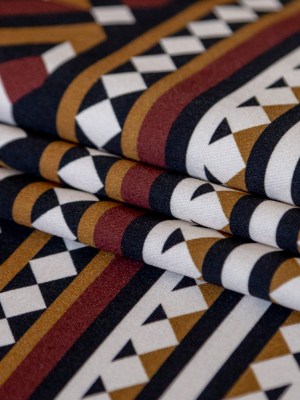 Stretch Cotton Sateen Panel – Mahogany Geometric – Art-tumnal Equinox Print – Mood Exclusive Harvest Collection