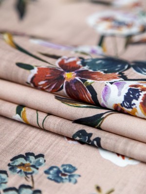 Stretch Cotton Sateen – Beige Floral – New Americana Print – Mood Exclusive Harvest Collection
