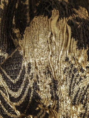 Metallic Gold and Black Wood Grain Luxury Plisse Brocade