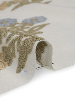 Polyester and Cotton Slubbed Drapery Woven with Viscose Embroidery – Seaspray Simple Flowers – British Imported