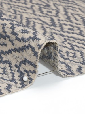 Geometric Recycled Polyester and Cotton Drapery Jacquard – Denim – British Imported