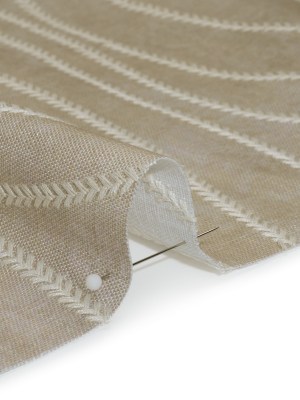 Embroidered Linen-Look Polyester Drapery Woven – Otter Leafy Wavy Lines and Watercolor Texture – British Imported