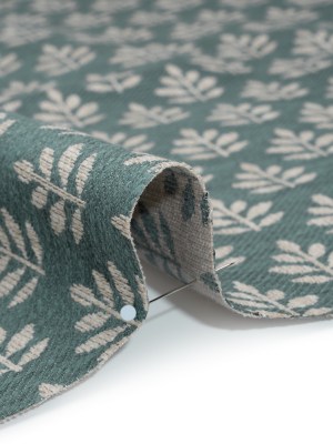 Polyester and Cotton Twill Jacquard – Teal Lines of Leaves – British Imported