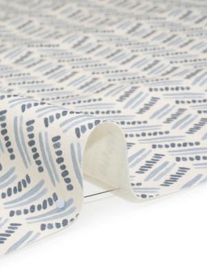Cotton and Linen Canvas Print – Indigo Stripes and Dots – British Imported
