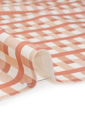 Cotton and Linen Canvas Print – Clay Geometric Block Stripes – British Imported