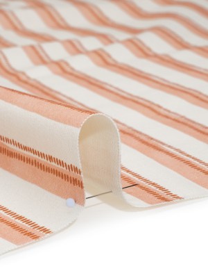 Cotton and Linen Canvas Print – Terracotta Stripes and Dots – British Imported