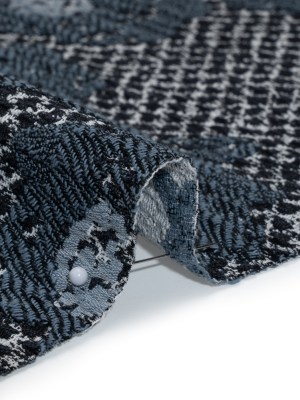 Cotton and Polyester Matelasse – Blue and Black Diamonds and Flowers – Designer Deadstock