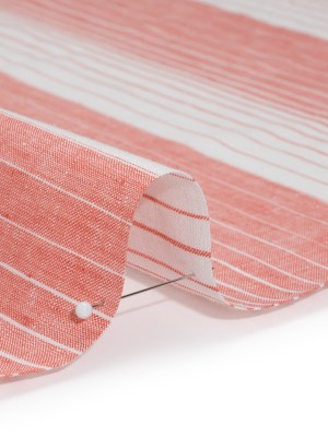 Medium Weight Linen Woven – Coral Pink and White Gradient Stripes