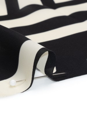 Satin-Faced Polyester Twill – Black and Ivory Geometric Stripes – Made in Italy