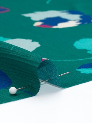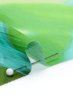Crinkled Polyester Charmeuse – Turquoise, Grass and Tea Green Leaves – Made in Italy