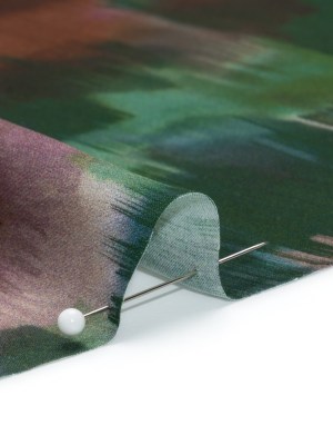 Polyester Charmeuse – Hunter Green, Brown and Plum Purple Brushstrokes – Made in Italy