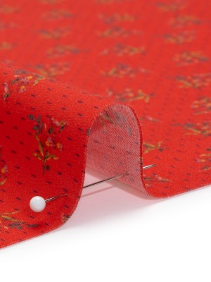 Lightweight Cotton Sateen – Red Floral Ditsy and Dashes – Made in Italy